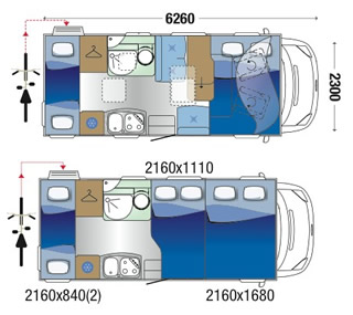 With sleeping for up to six people, at under 6.3m the 400 offers most of the facilities normally associated with larger vehicles. Large wash room featuring a rigid shower door and rear bunks with the lower able to be raised to allow excellent storage with access from outside are two of the many features included in this excellent family touring motorhome.